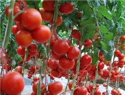 番茄(学名:Lycopersicon esculentum Mill.),是茄科番茄属一年生或多年生草本植物,体高0.6-2米,全体生粘质腺毛,有强烈气味,茎易倒伏,叶羽状复叶或羽状深裂,花序总梗长2-5厘米,常3-7朵花,花萼辐状,花冠辐状,浆果扁球状或近球状,肉质而多汁液,种子黄色,花果期夏秋季。 番茄原产南美洲,中国南北方广泛栽培。番茄的果实营养丰富,具特殊风味。可以生食、煮食、加工番茄酱、汁或整果罐藏。